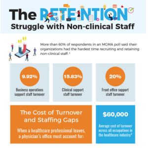More than 60 percent of respondents in a recent STAT poll from the Medical Group Management Association (MGMA) said their organizations had the hardest time recruiting and retaining non-clinical staff: